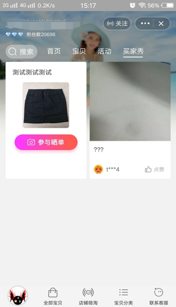 开启之后,可以在自己的手淘页面看到店铺晒单界面